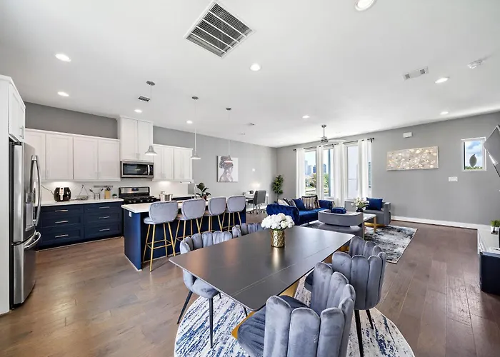 Welcome to the Luxury Downtown Home With Rooftop Deck And Skyline View, an exquisite retreat nestled in the heart of the vibrant city. This elegant abode marries modern sophistication and comfort, providing guests with an unparalleled experience. Each suite, designed with meticulous attention to detail, boasts floor-to-ceiling windows that offer breathtaking city vistas, ensuring that the stunning skyline is a backdrop to your stay.